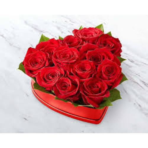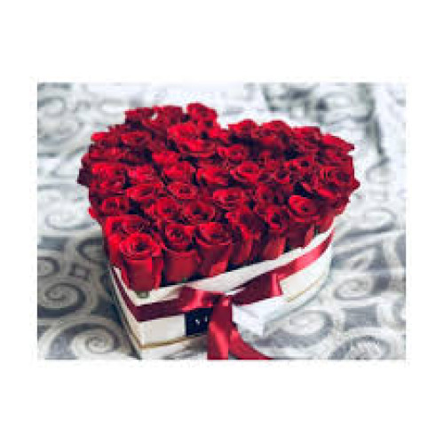 Arrangement of 31 red roses in a heart-shaped box - excellent gift for Valentines Day and Womens Day.
