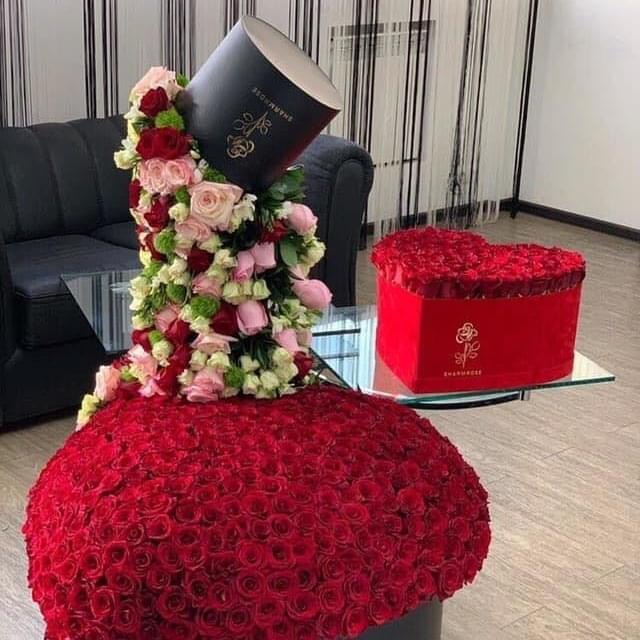 Our Heart collection features red roses in our hand-crafted light pink suede heart-shaped box. There..